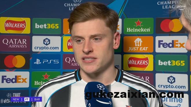 在欧冠1/8决赛首回合打进一球帮助纽卡斯尔联主场1-1战平巴塞罗那之后,哈维-巴恩斯接受了来自亚马逊Prime Video的采访。