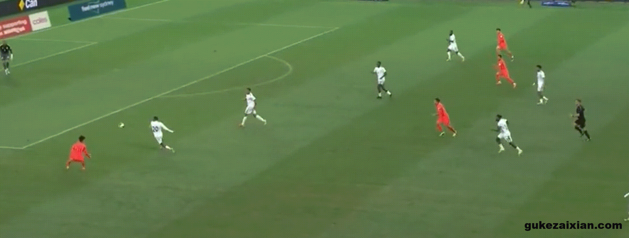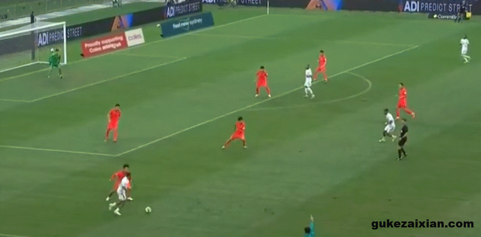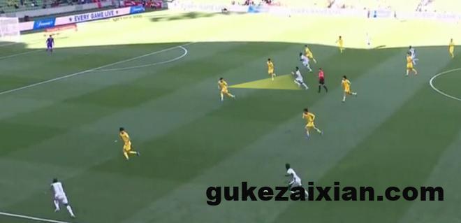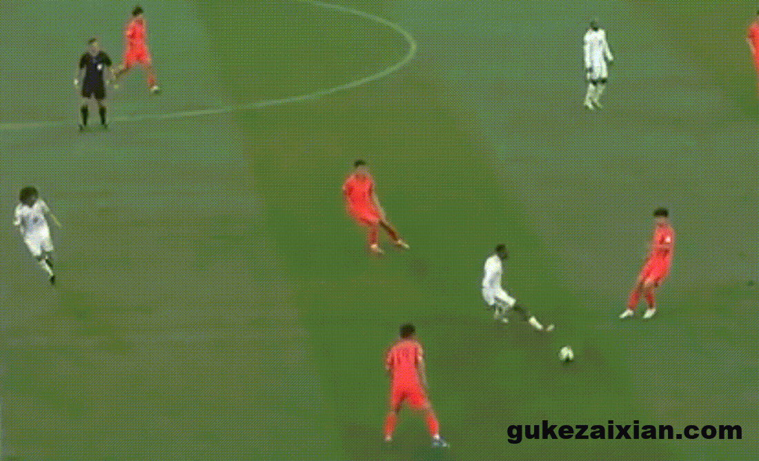 张玉宁不仅在空中完全占据优势,在地面拿球时库拉索的后卫也是对他毫无办法。这次张玉宁接到队友的界外球,禁区线左侧背身拿球,转身扛开后卫冲入禁区,变向晃开角度之后倒三角传中,可惜没有队友跟进,错失了一次非常不错的进攻机会。