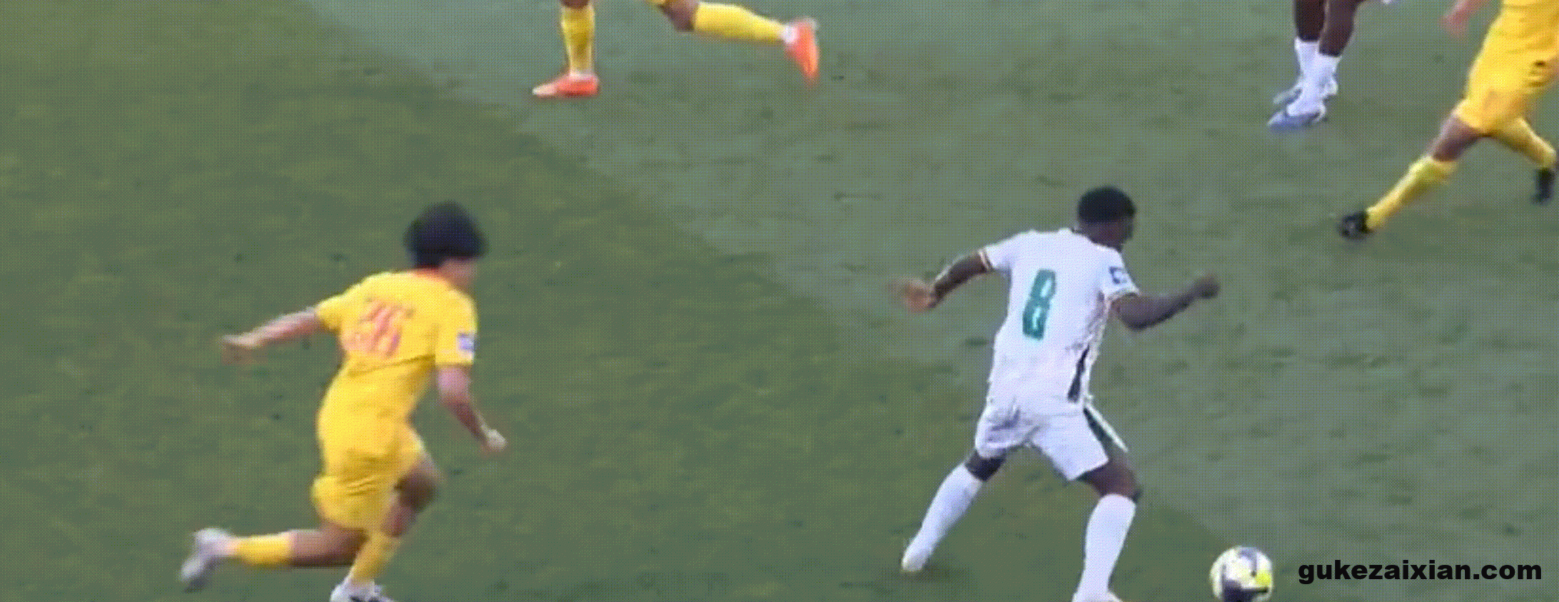 张玉宁本场比赛的状态实在太好,这次回撤之后轻巧地将球卸下,随后转身倚住后卫向前推进,在这个过程中他连续躲开了库拉索两名球员的放铲,只可惜最后向边路的分球出现了失误。