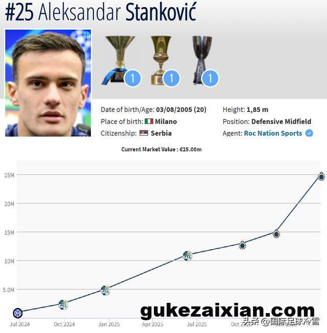 因为三斯的进步速度很快,因为三斯本赛季欧冠表现抢眼(10场欧冠正赛打入2球助攻2次),因为他在塞尔维亚国家队的上位势头已清晰可见,所以在过去的16个月,三斯的《转会市场》估价从500万欧元跃升到了如今的2500万欧元。